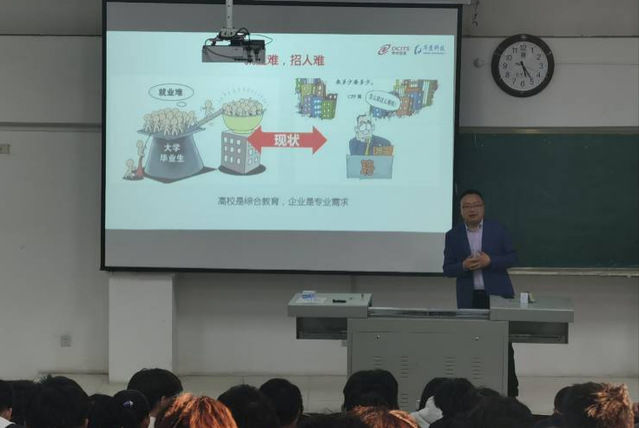 據(jù)悉,此次講座是“網(wǎng)絡(luò)工程專(zhuān)業(yè)校企共建專(zhuān)題系列講座”的第一期,本系列講座的開(kāi)展主要是將IT行業(yè)(網(wǎng)絡(luò)領(lǐng)域)信息引入校園,輔助學(xué)生在校期間認(rèn)識(shí)網(wǎng)絡(luò)專(zhuān)業(yè)的行業(yè)需求,幫助學(xué)生做好職業(yè)規(guī)劃,加強(qiáng)學(xué)生專(zhuān)業(yè)學(xué)習(xí)信心。