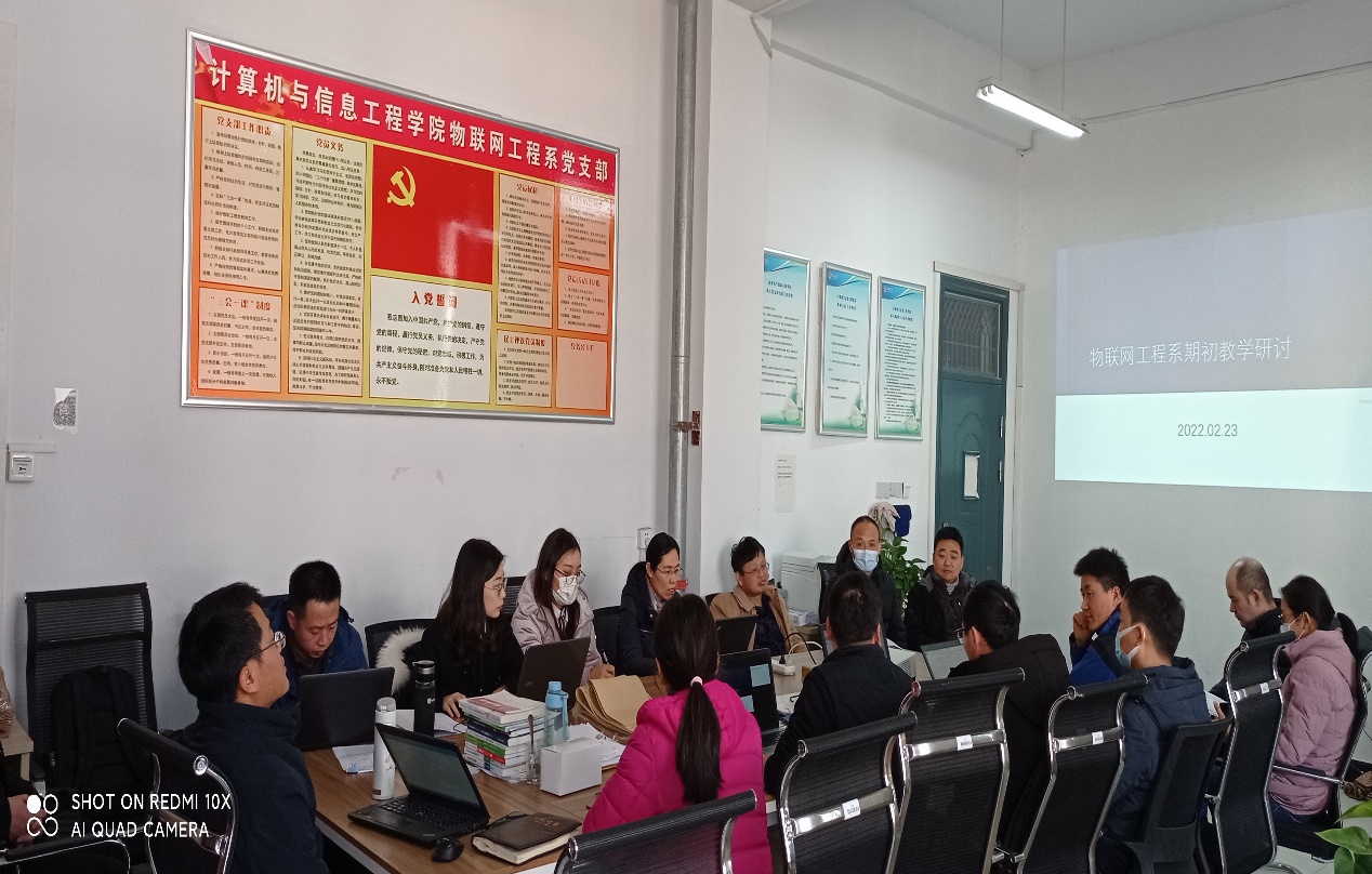 2022年2月23日下午,計算機與信息工程學(xué)院在X406組織召開物聯(lián)網(wǎng)工程系期初教學(xué)研討會。會議由系主任葉春主持,本學(xué)期物聯(lián)網(wǎng)工程專業(yè)、空間信息與數(shù)字技術(shù)專業(yè)全體教師參加了本次會議。
