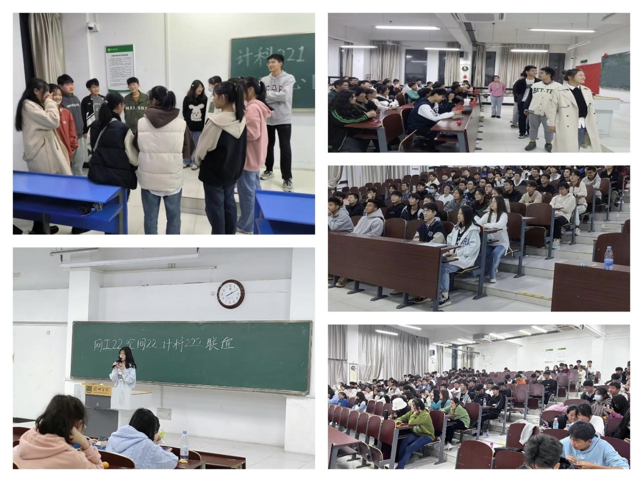 空間22,網(wǎng)工22和計(jì)科222聯(lián)合舉辦聯(lián)誼活動(dòng),人數(shù)眾多,現(xiàn)場(chǎng)氛圍活躍,三個(gè)班級(jí)的同學(xué)輪番上臺(tái)展示才藝,你方唱罷、我方登場(chǎng),精彩紛呈。軟件221別出心裁,充滿創(chuàng)新,以心理情景劇的方式引入主題,深深吸引了同學(xué)們的興趣。擊鼓傳花、你問(wèn)我答,軟件222的活動(dòng)連貫緊湊,在游戲中展現(xiàn)自己,在問(wèn)答中解決大學(xué)生活問(wèn)題。應(yīng)急22與計(jì)科221以一首溫暖動(dòng)聽(tīng)的《我的甜蜜》、一場(chǎng)歡樂(lè)和諧的抓鴨子游戲,讓學(xué)生們倍感集體的溫暖。物聯(lián)22在活動(dòng)最后帶領(lǐng)同學(xué)們互換勵(lì)志語(yǔ)錄,互相激勵(lì),拉近彼此距離。