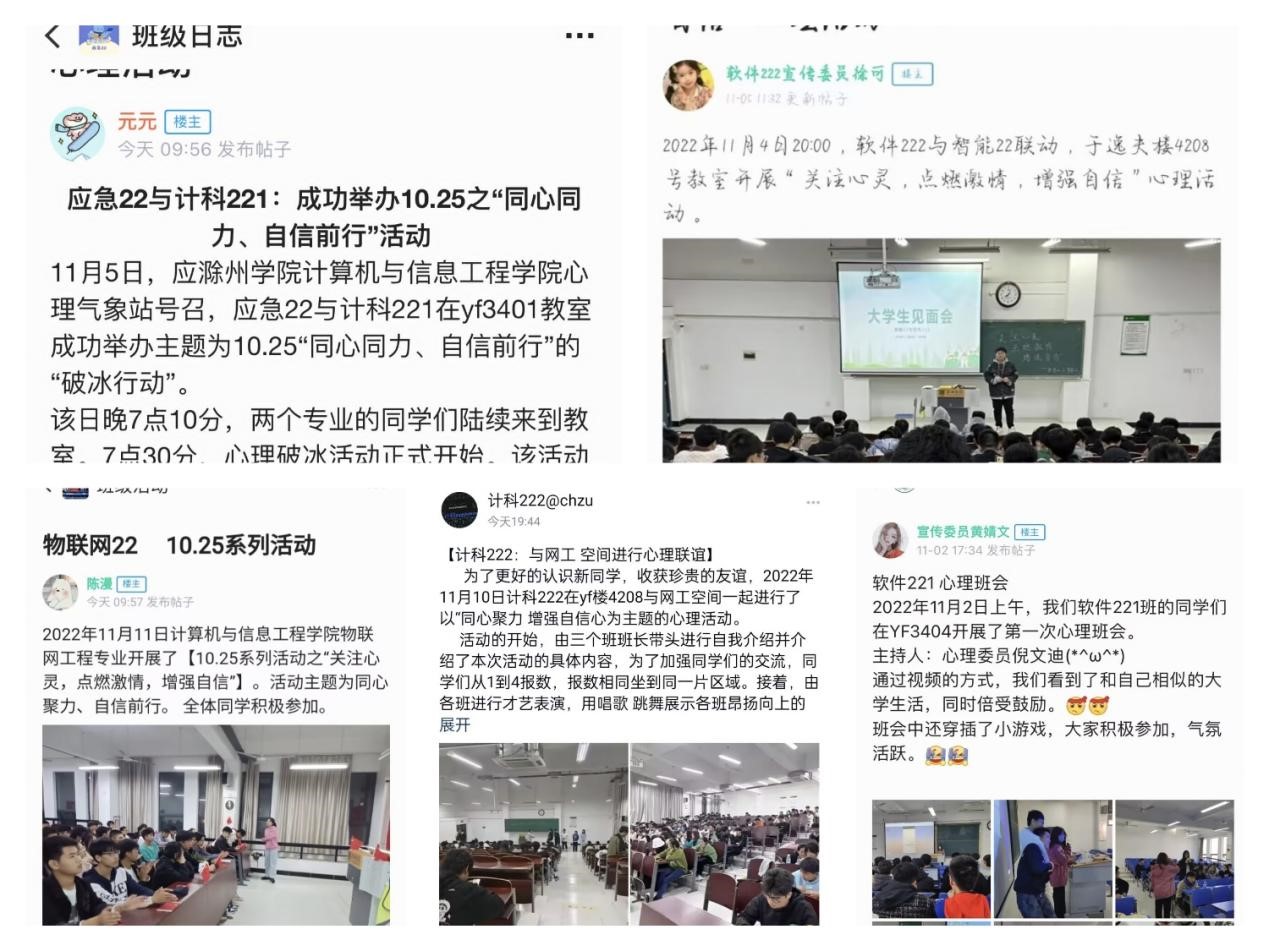2022年11月初,在各班班委和同學(xué)們的共同努力下,信息學(xué)院心理氣象站組織22級(jí)各班順利開(kāi)展了10.25之“同心聚力、自信前行”素拓活動(dòng)。