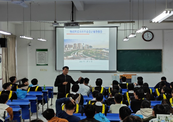 系主任葉春首先結合物聯(lián)網工程一流專業(yè)建設和工程教育認證要求,介紹了畢業(yè)實習和畢業(yè)設計工程實踐環(huán)節(jié)的實施要求以及具體安排。隨后系書記劉士喜作了物聯(lián)網系本科畢業(yè)設計輔導報告,主要介紹了如何撰寫本科畢業(yè)設計、畢業(yè)設計相關技巧以及注意事項,并就學生提出的問題進行了詳細解答。