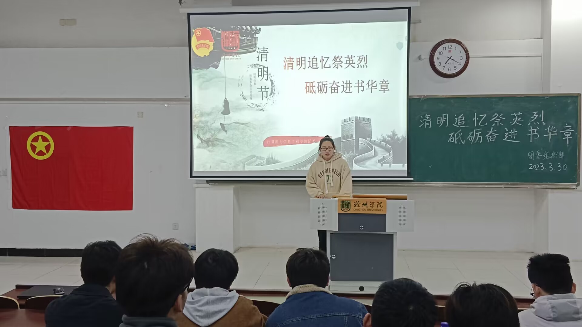 3月30日,計(jì)算機(jī)與信息工程學(xué)院開展“清明追憶英烈,砥礪奮進(jìn)書華章”主題活動(dòng),全體輔導(dǎo)員、團(tuán)支部委員、2022年度文體之星和創(chuàng)新之星代表參加。