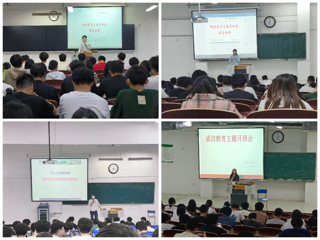 班主任宣誠信。開展“誠信”主題班會。班主任開展以誠信為主題的班會活動,以誠信考試和助學(xué)貸款還款為切入點,結(jié)合案例加強(qiáng)學(xué)生誠信教育,簽訂誠信 倡議書,弘揚誠信美德。