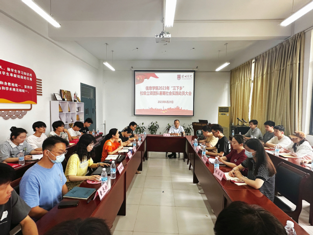 6月29日上午,計算機與信息工程學院舉行2023年“三下鄉(xiāng)”校級立項團隊暑期社會實踐動員大會。學院黨委書記吳文杰、黨委副書記鄭曉華、團委負責人、校級立項實踐團隊指導教師及團隊學生代表共70余人參加動員大會,會議由院團委書記吳豹主持。