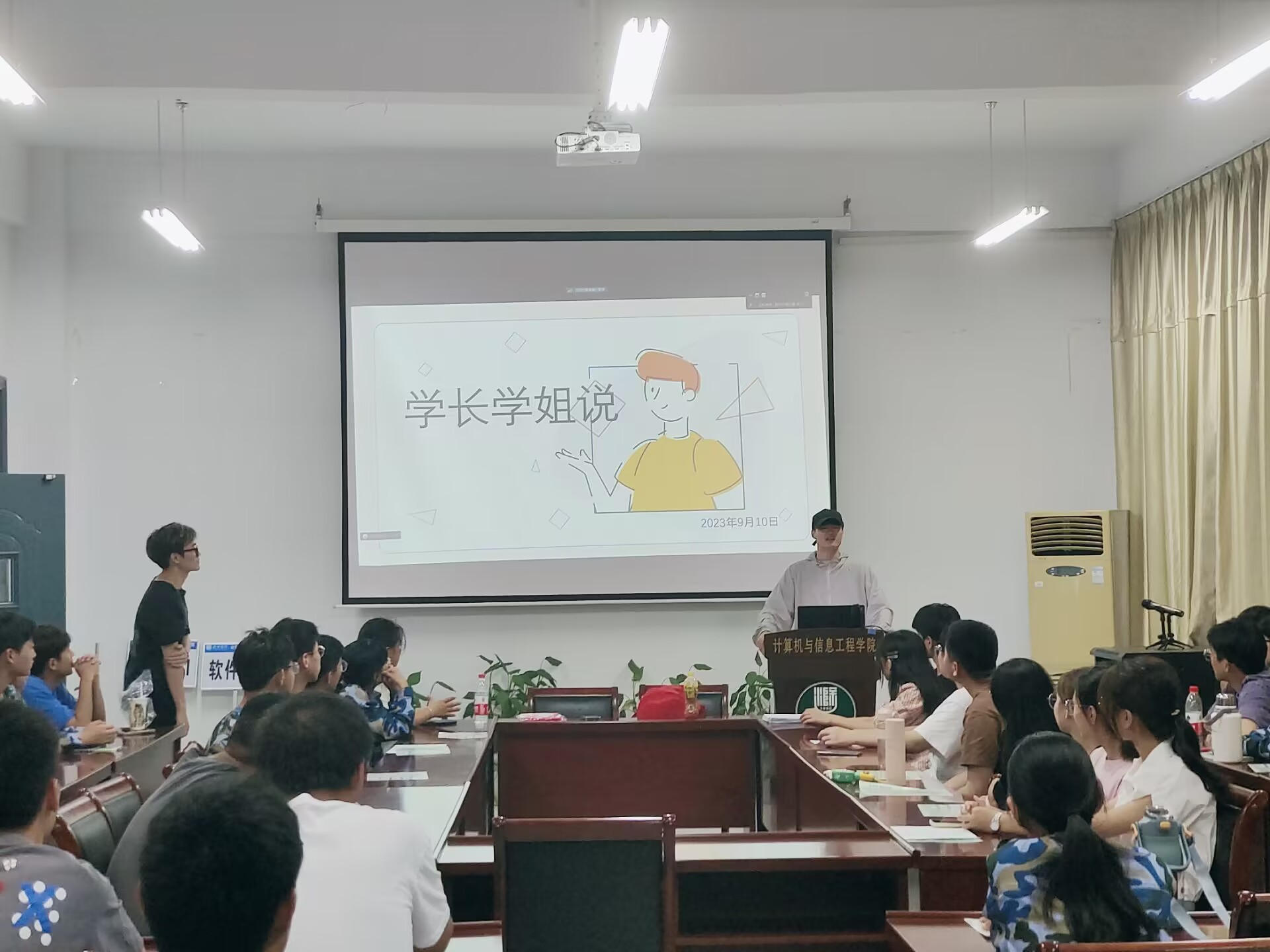 開(kāi)學(xué)以來(lái),計(jì)算機(jī)與信息工程學(xué)院開(kāi)展“學(xué)長(zhǎng)學(xué)姐說(shuō)”活動(dòng),組織優(yōu)秀學(xué)子代表到2023級(jí)各專(zhuān)業(yè)晚自習(xí)教室進(jìn)行經(jīng)驗(yàn)分享,為新生答疑解惑。