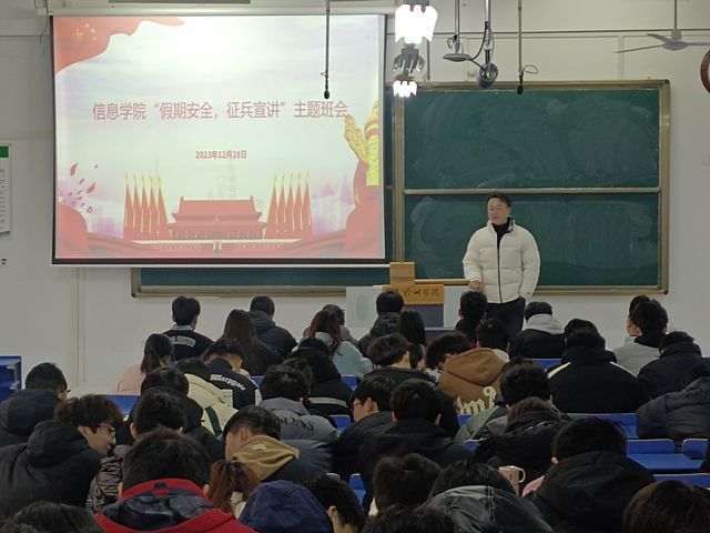 為響應(yīng)黨和國(guó)家的號(hào)召,切實(shí)做好大學(xué)生征兵宣傳工作,充分調(diào)動(dòng)同學(xué)們應(yīng)征入伍的積極性,近日,信息學(xué)院召開(kāi)了征兵宣傳主題班會(huì),同時(shí)對(duì)近期重點(diǎn)工作進(jìn)行了安排。
