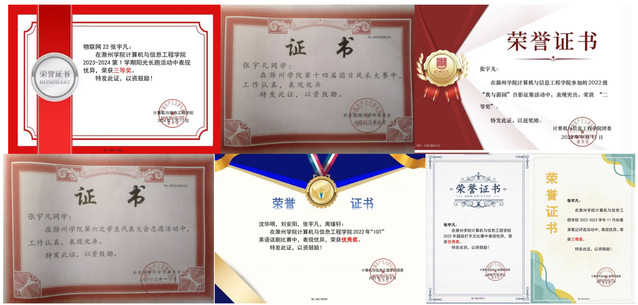 誠(chéng)信為本,奉獻(xiàn)為榮,自強(qiáng)不息。這一直是張宇凡的做事準(zhǔn)則。截止目前,張宇凡累計(jì)參加過(guò)的志愿活動(dòng)有:第六屆滁州學(xué)院學(xué)生代表大會(huì)志愿活動(dòng)、團(tuán)風(fēng)才藝展示志愿活動(dòng)、周五一小時(shí)志愿活動(dòng)、周日一小時(shí)志愿活動(dòng)、畢業(yè)生離校志愿服務(wù)活動(dòng)、雙百比賽志愿服務(wù)活動(dòng)、馬拉松志愿者培訓(xùn)會(huì)志愿服務(wù)活動(dòng)、換屆大會(huì)志愿服務(wù)活動(dòng)、迎2023屆新生志愿服務(wù)活動(dòng)、滁州學(xué)院十七屆田徑運(yùn)動(dòng)會(huì)志愿服務(wù)等等,共累計(jì)80余小時(shí)。同時(shí),他積極參加了青馬工程,認(rèn)真鉆研專業(yè)課程,全面提升自己。大一學(xué)年他在班級(jí)的智育和綜測(cè)成績(jī)均為第一。