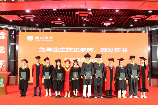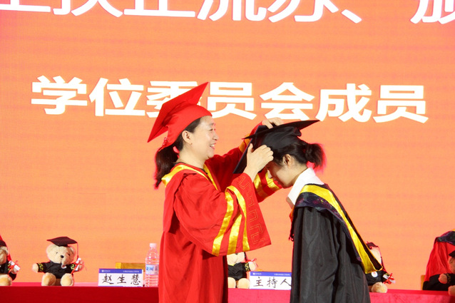 副院長楊斌宣讀了授予2024屆本科畢業(yè)生學士學位的決定,副院長陳冬花宣讀了獲得省校兩級雙優(yōu)生以及考取碩士研究生的名單,黨委副書記鄭曉華宣讀并頒發(fā)了校友聯(lián)絡員的聘任證書。在熱烈的掌聲中,院領導和學位評定委員會成員代表為畢業(yè)生逐一扶正流蘇,頒發(fā)學位證書,并與他們合影留念。