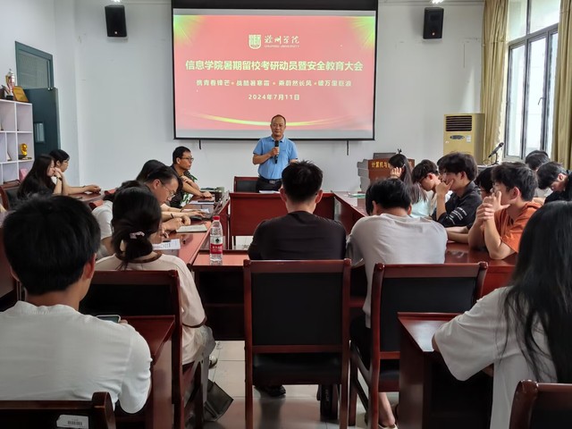 7月11日,信息學(xué)院舉辦了“暑期留校考研動員暨安全教育大會”。信息學(xué)院黨委書記吳文杰、黨委副書記鄭曉華、全體輔導(dǎo)員及準(zhǔn)備留校考研的學(xué)生參加了此次會議。
