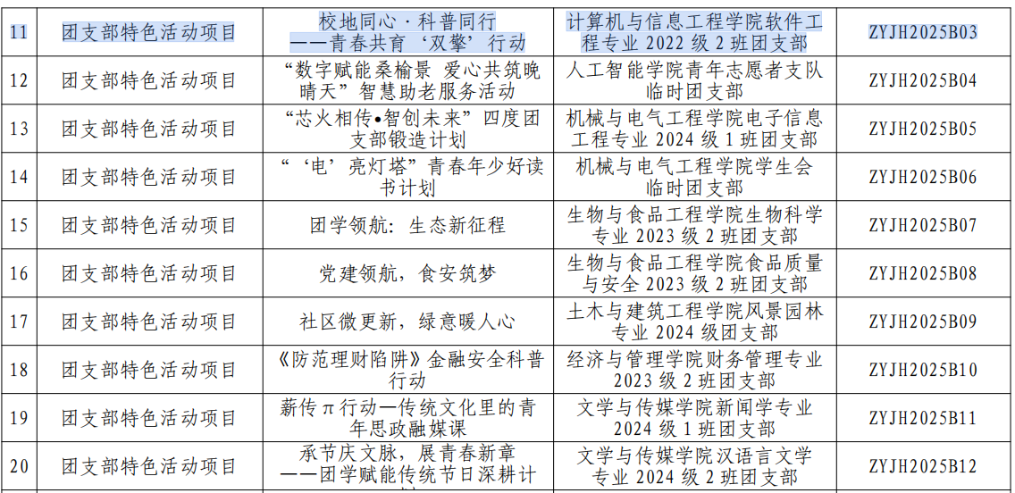 近期校團(tuán)委公示了2025 年基層團(tuán)學(xué)工作“卓越計(jì)劃”項(xiàng)目立項(xiàng)結(jié)果。信息學(xué)院團(tuán)委申報(bào)的鑄魂“信青年”品牌矩陣,匠心賦能成長之路,獲批團(tuán)委書記創(chuàng)新項(xiàng)目;軟件222團(tuán)支部申報(bào)的校地同心·科普同行 ——青春共育‘雙擎’行動,獲批團(tuán)支部特色活動項(xiàng)目。