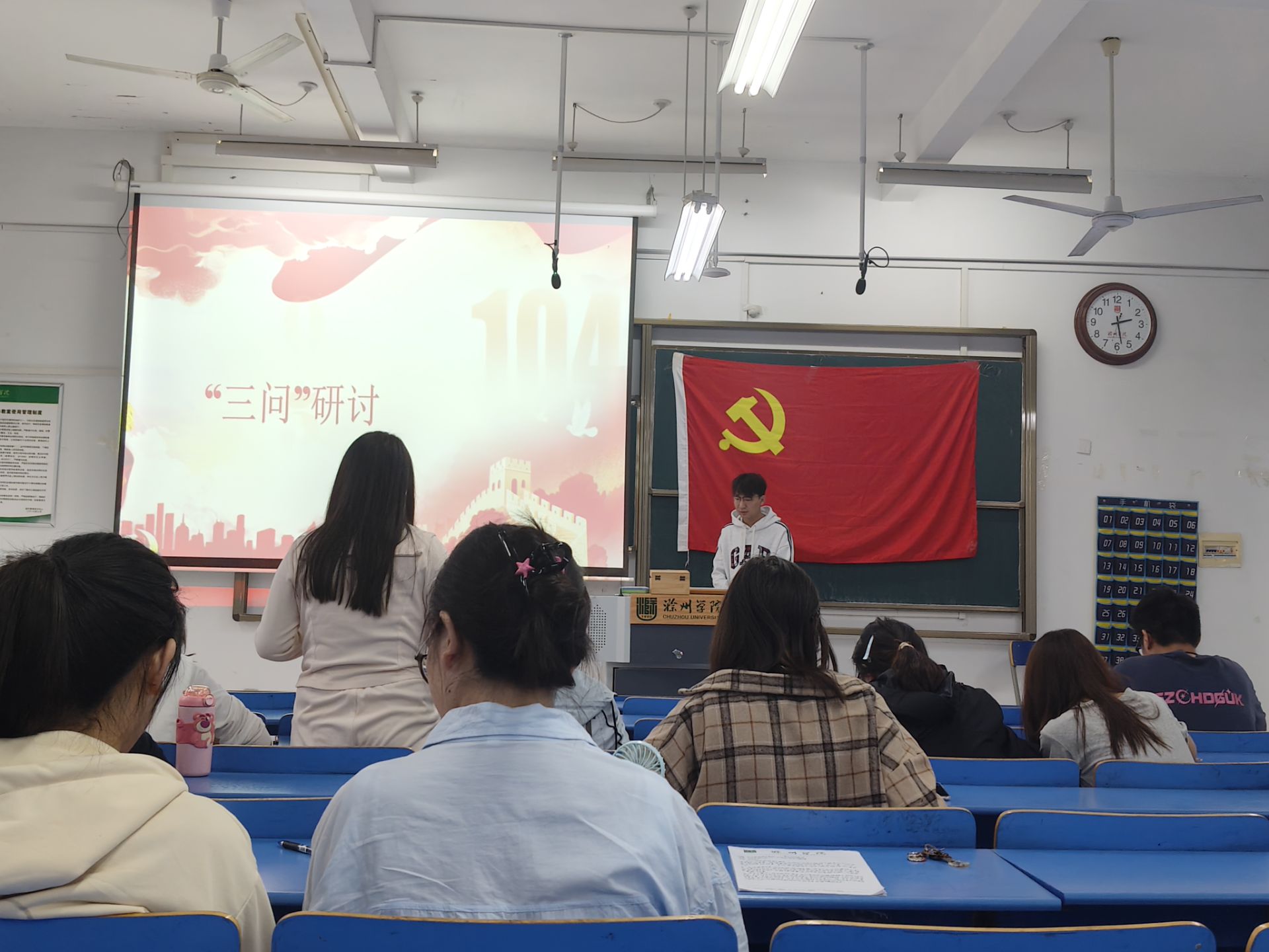 9月27日,計算機工程系學(xué)生黨支在逸夫樓3202開展了以“紀(jì)念抗戰(zhàn)偉大勝利,弘揚偉大抗戰(zhàn)精神”為主題的“三問”研討會。計算機工程系學(xué)生黨支部書記車喆、支部全體黨員及預(yù)備黨員參加此次會議。