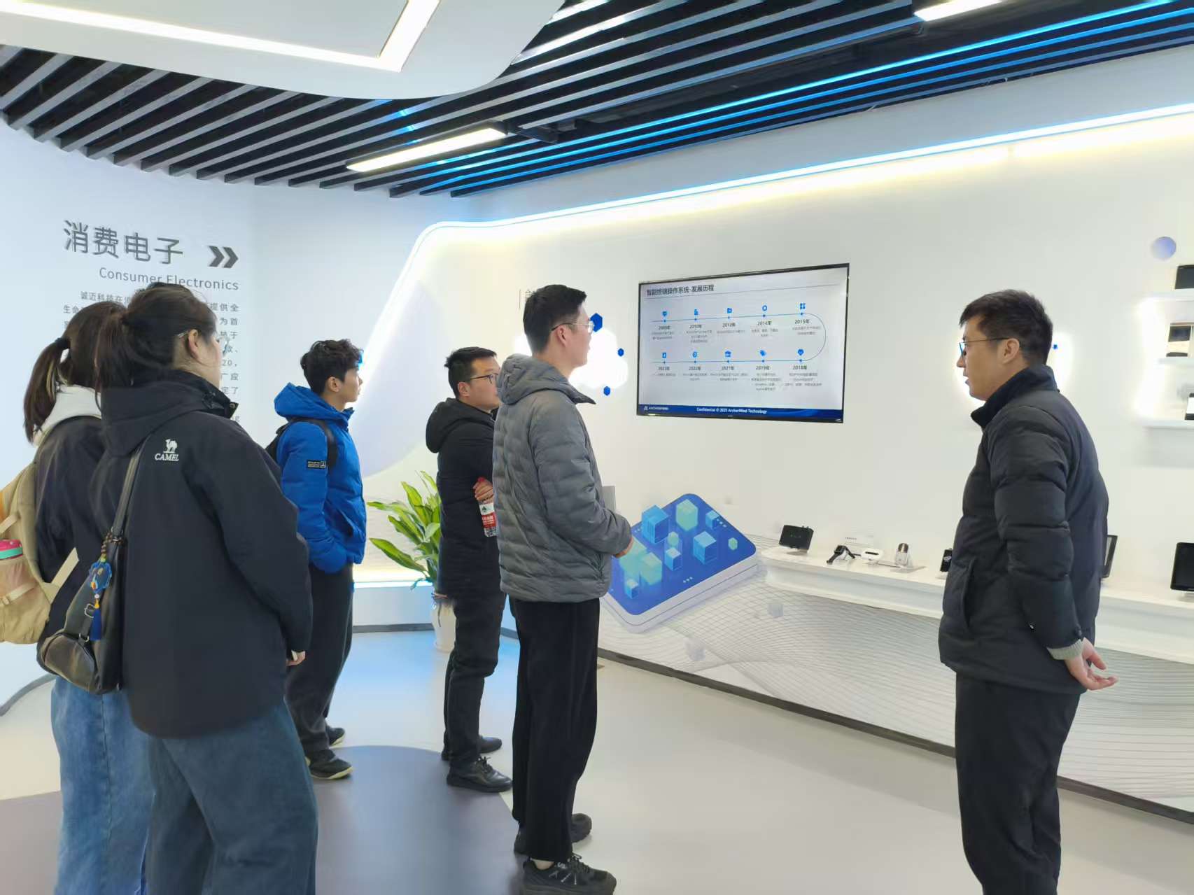 離開實習基地后,桂寶帶領部分學生赴誠邁科技(南京)股份有限公司調研,受到鴻蒙事業(yè)部項目總監(jiān)葛建軍的熱情接待。雙方圍繞學科競賽、產(chǎn)學研協(xié)同育人等議題進行了深入交流,就強化校企合作、拓展學生實習就業(yè)渠道等方面達成了共識。調研組一行還參觀了誠邁科技(南京)股份有限公司產(chǎn)品展廳。